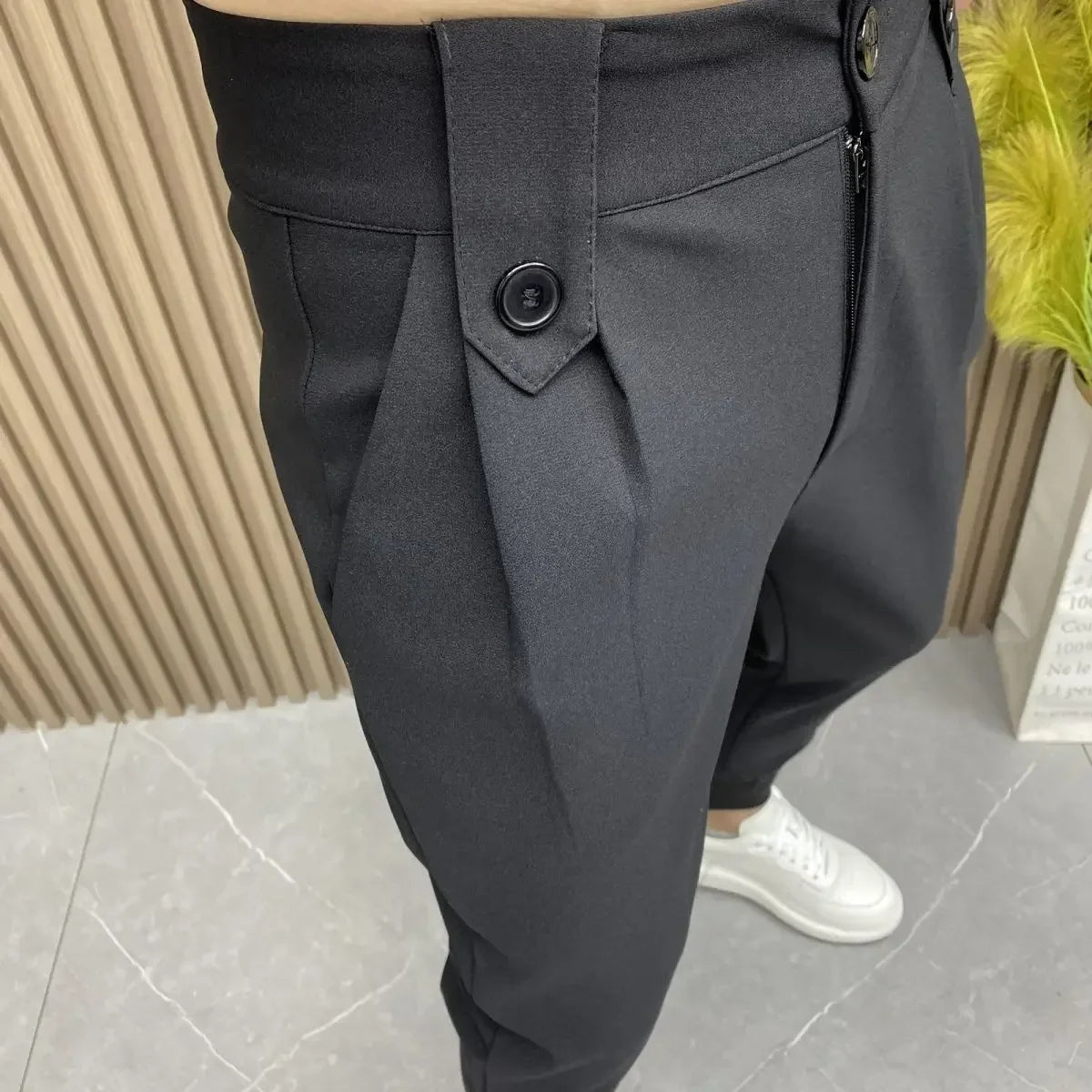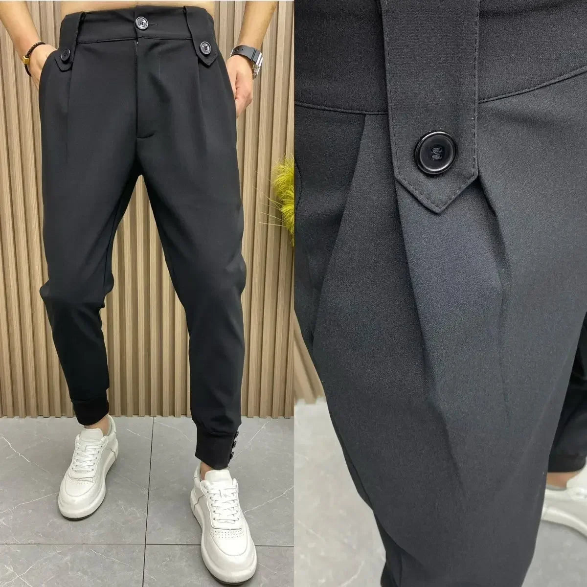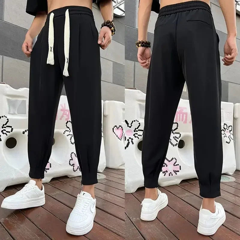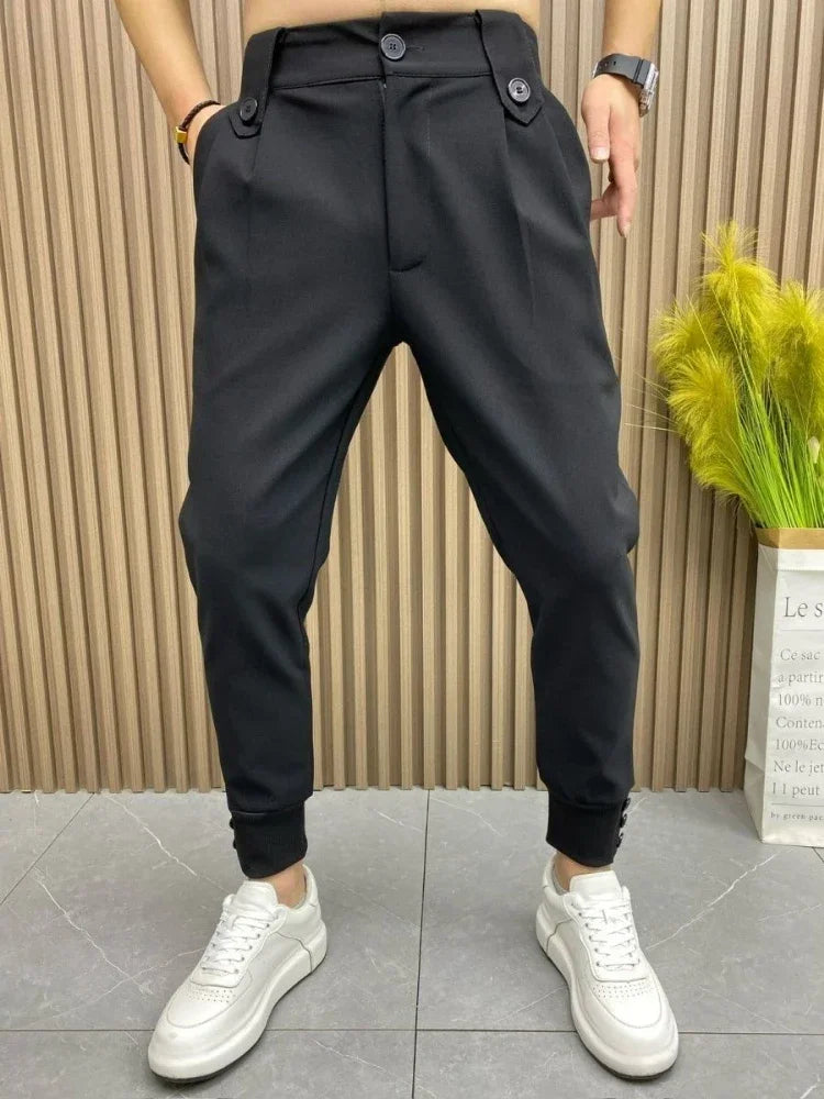 Slim Fit Plus Big Size Tressed Men's Summer Pants 9 Cropped Male Suit Trousers Korean Style Clothes Slacks 2024 Formal Luxury