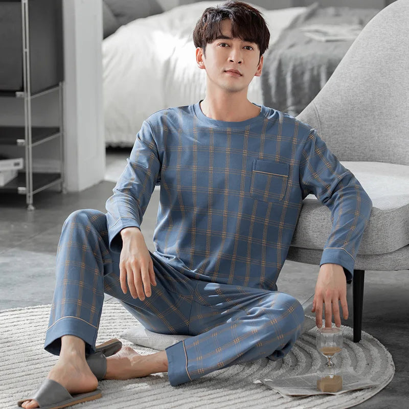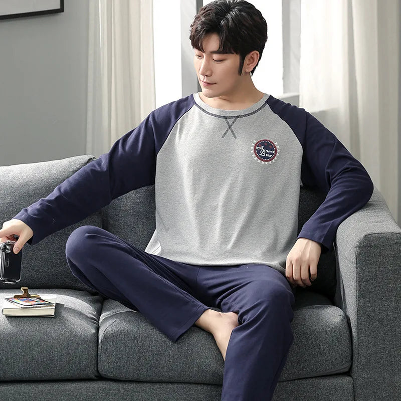 Spring And Autumn Men's Pajamas Long-Sleeved Trousers Simple Homewear Thin Cotton Boys Large Size Casual Comfortable Homewear Su