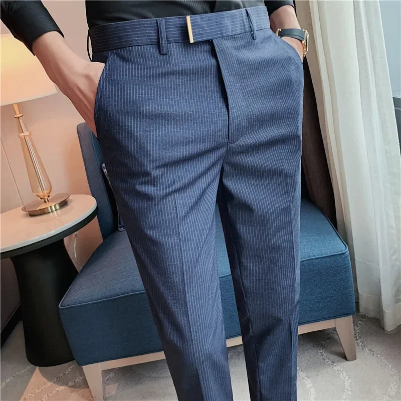 Spring Autumn Men Suit Pants Fashion British Style Business Office Mens Dress Pants High Quality Striped Slim Fit Men's Trousers