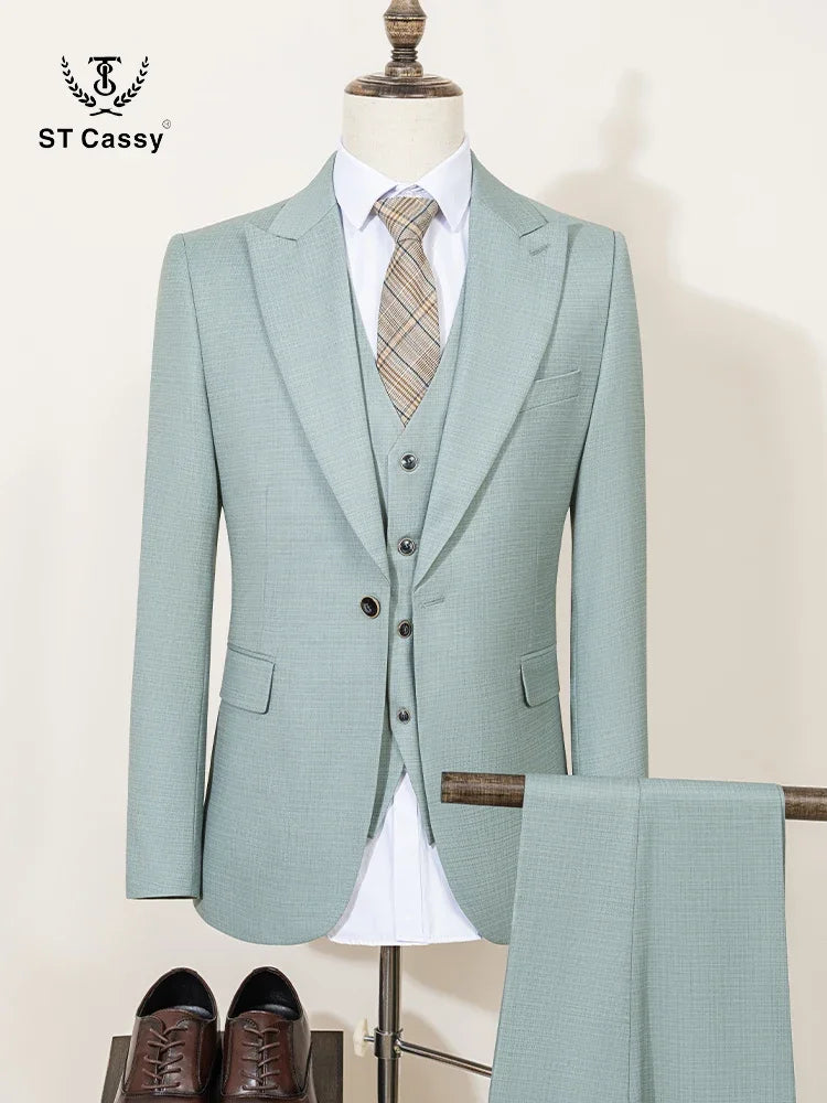 ST Cassy High Quality Men's suits Summer thin Green Slim Fit Formal Business Office Men's clothing(jacket+Vest+Pants)