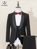 ST Cassy Men's suit black collar formal dress wedding three-piece suit orthodox suit vest pants