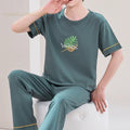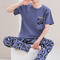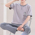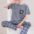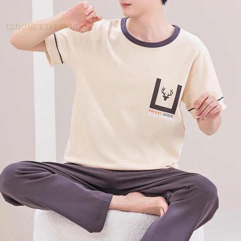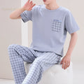 Summer Elegant Men Pyjamas Knited Plaid Pajamas Set Long Pants Sleepwear Pyjamas Night Suits Pijamas Plus Size 5XL Homewear PJ