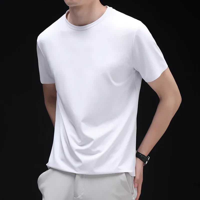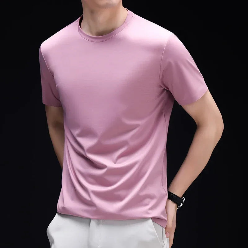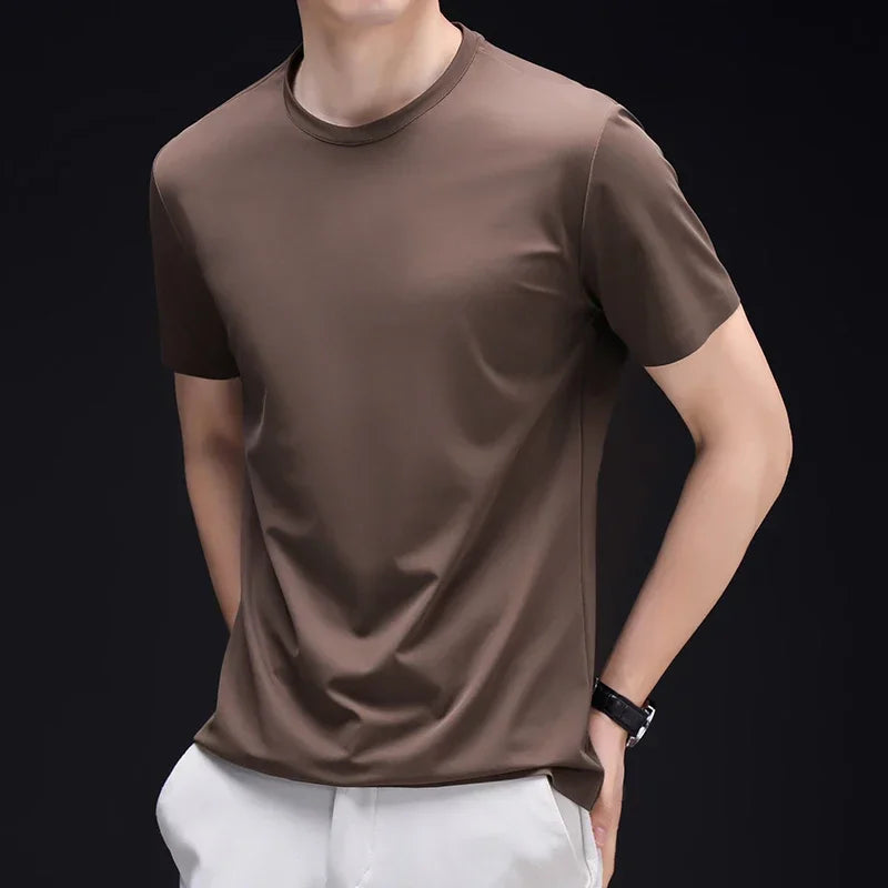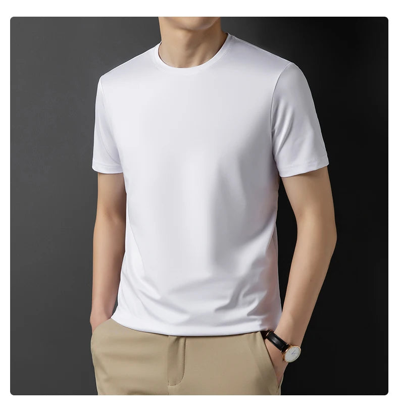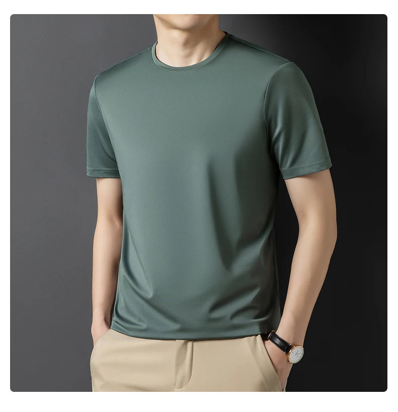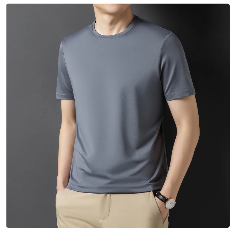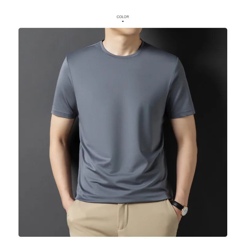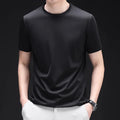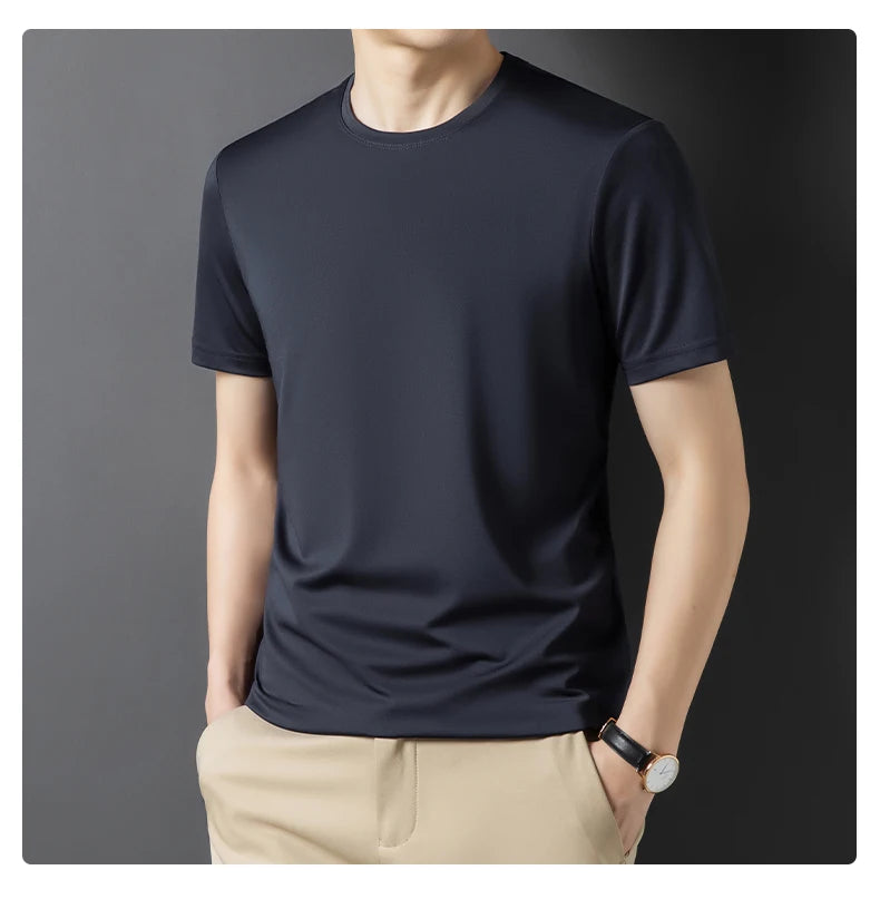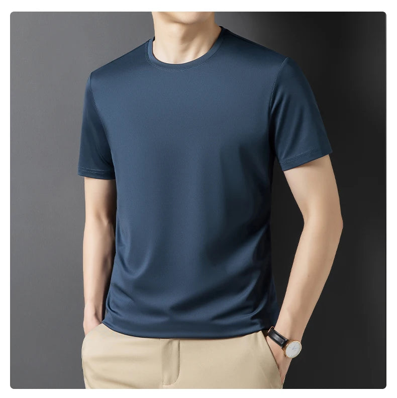 Summer High-End New Mulberry Silk Round Neck T-shirt Men's Thin Pure Color Silk Short Sleeve Middle-Aged and Young Men Clothing