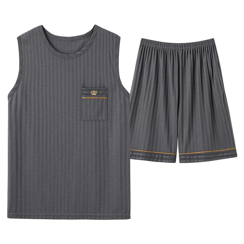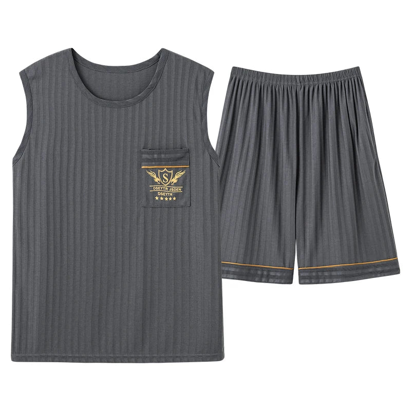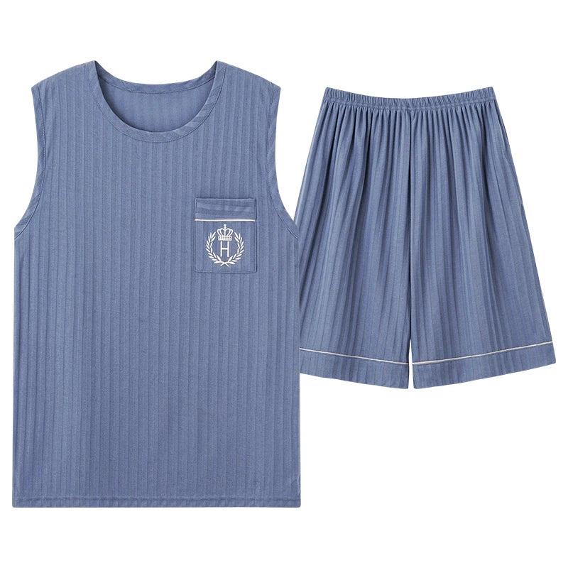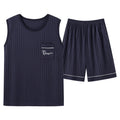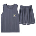 Summer New Knitted Cotton Sleeveless Men Pajamas Sets Vest Pajama For Men Sleepwear Suit Homewear Big Size L-5XL