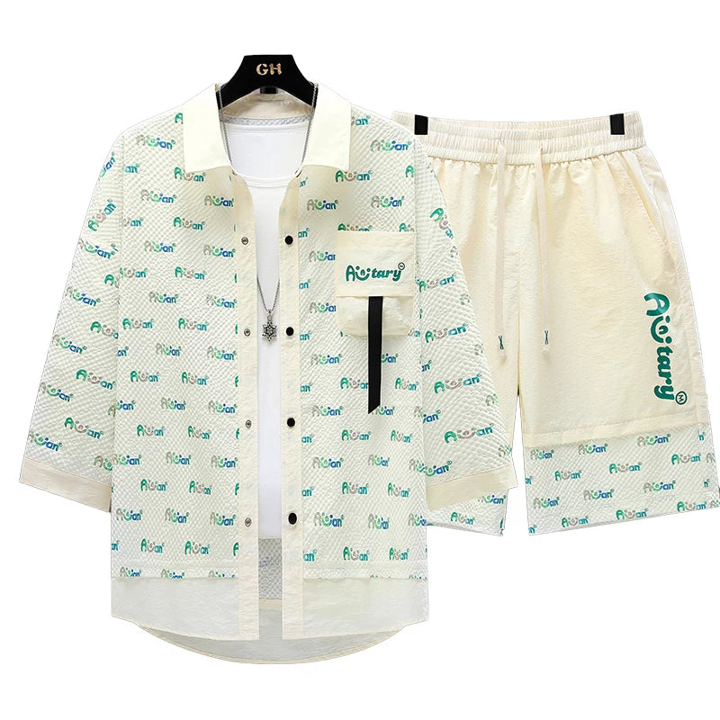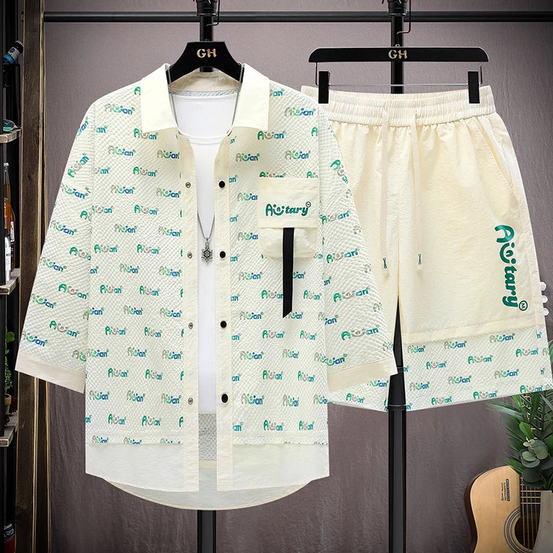 Summer Set Men's Casual Single Breasted Short Sleeve Shirt Shorts Loose Fashion High Quality Handsome Sweatshirt Suit