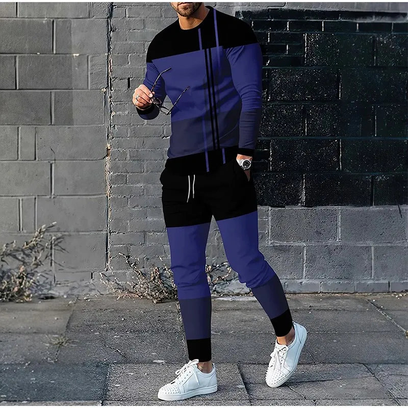 Trendy Designer Clothes 3D Print Oversize Suit Men Casual Long Sleeve Trousers Sport Tracksuit Graphic T Shirts 2PCS Sets