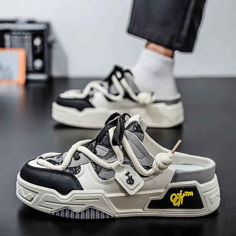 Trendy Half Slippers For Men Spring Autumn Outer Wear Lazy Person One Step No Heel Board Slippers Youth Casual Slippers