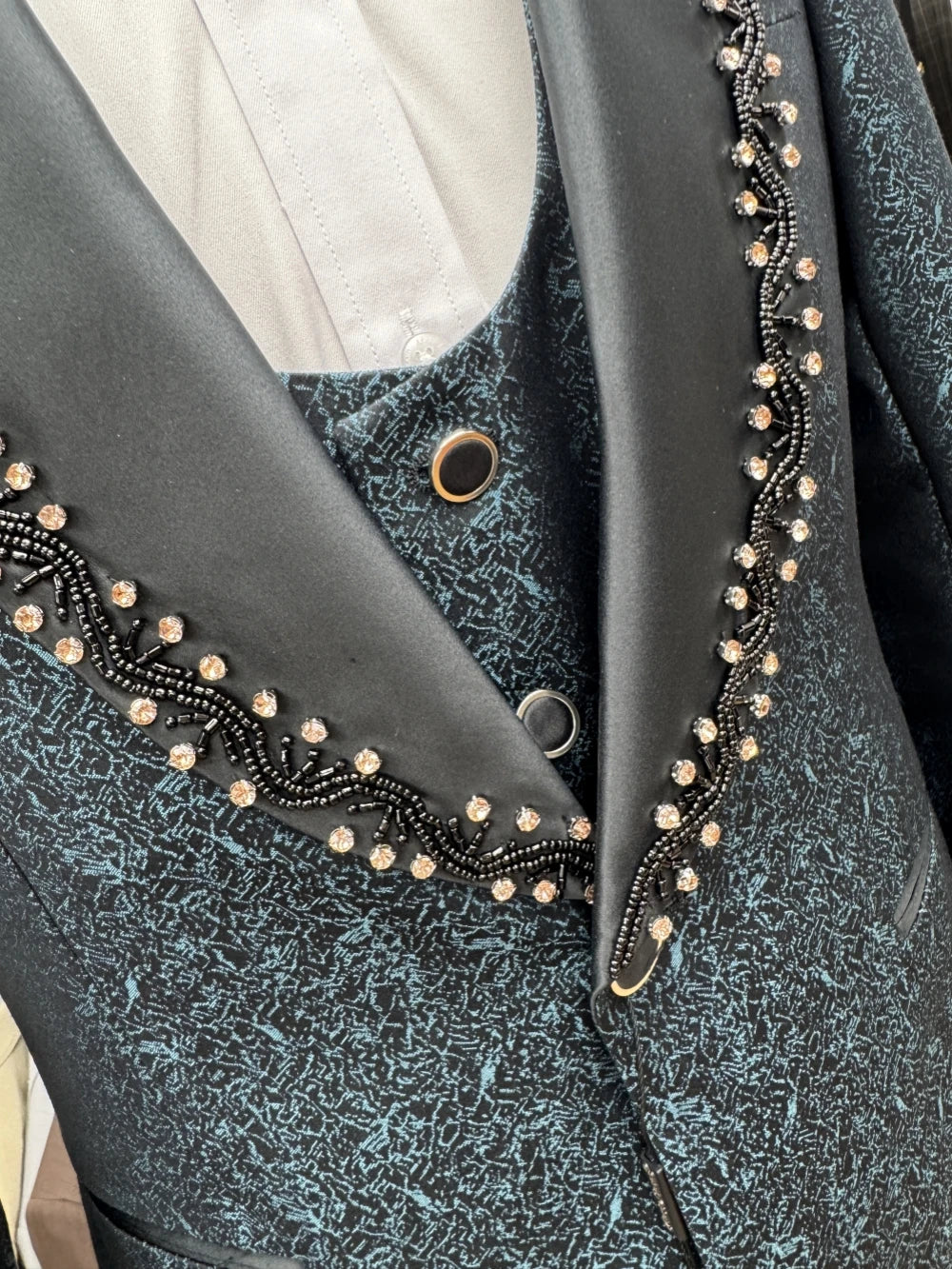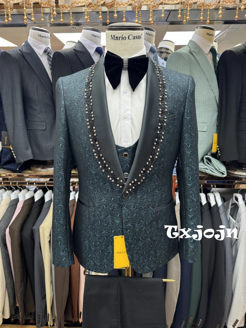 Txjojn New Jacquard Beaded Suit Set 3 Pieces For Men Prom Wear Customized Shawl Lapel Slim Fit Men's Suits Wedding Groom Outfit
