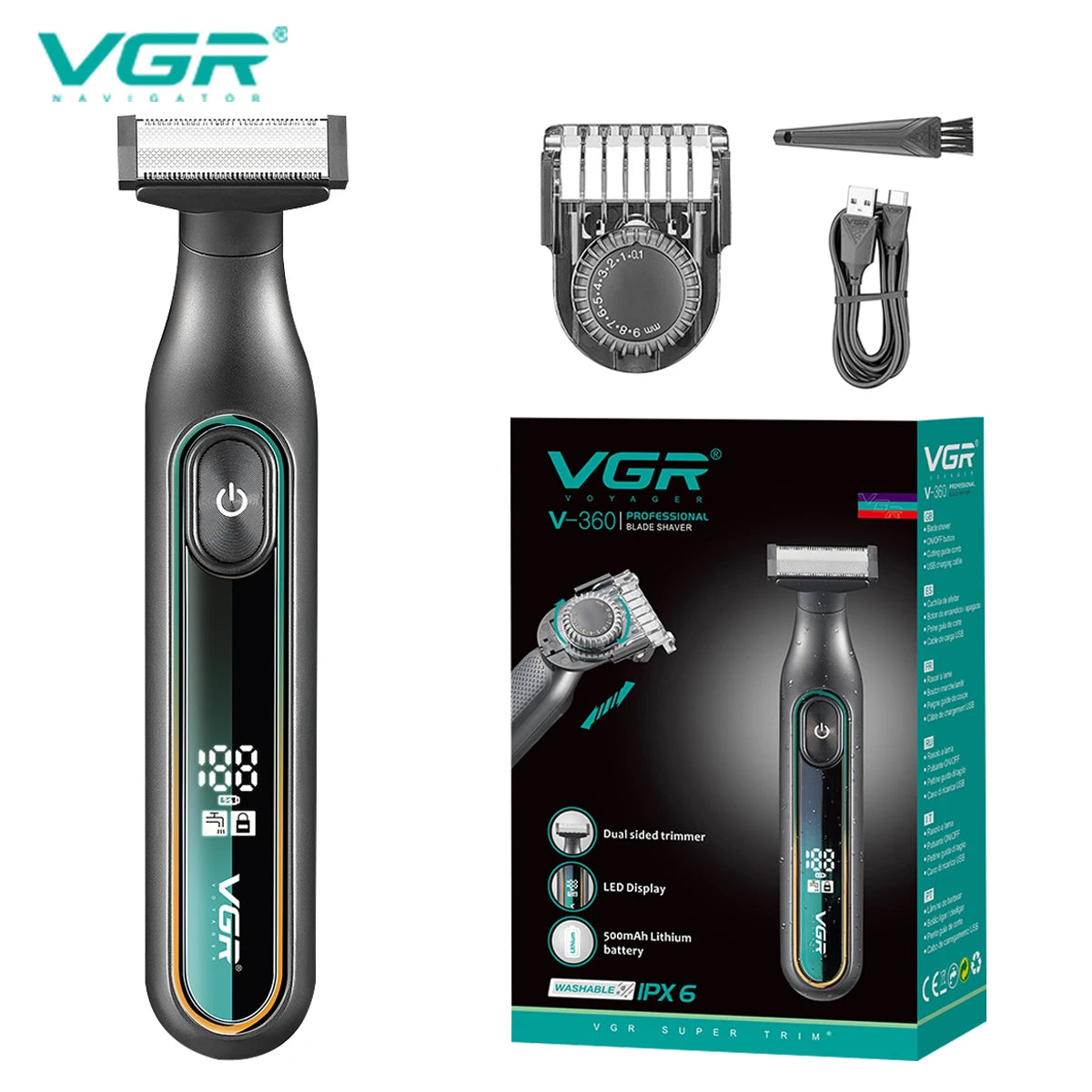 VGR 360 Hair Trimmer Cordless Beard Shaver Professional Hair Cutting Machine Waterproof 2 In 1 Digital Display Trimmer for Men