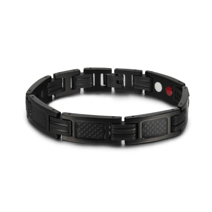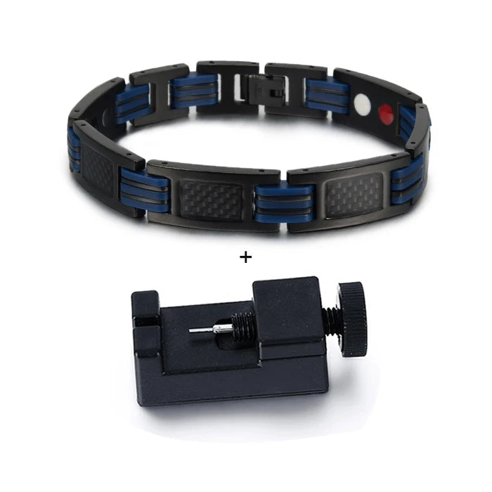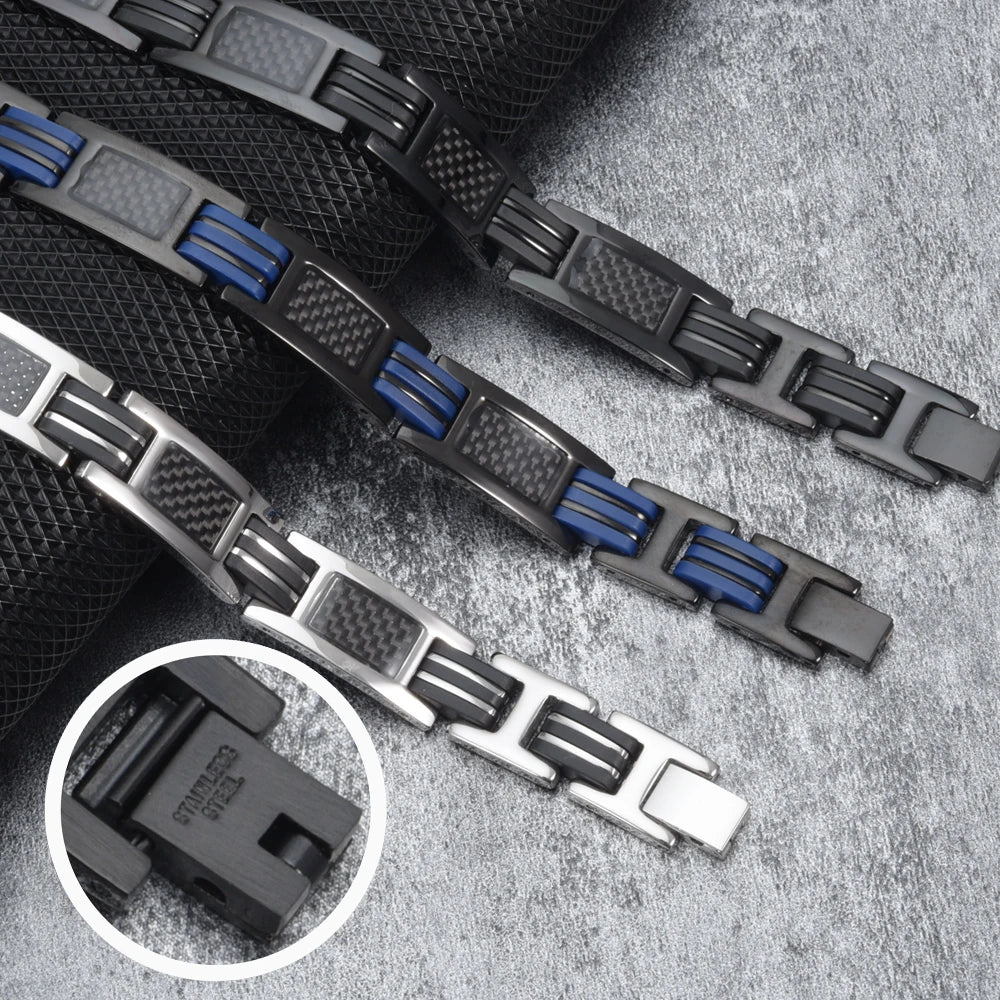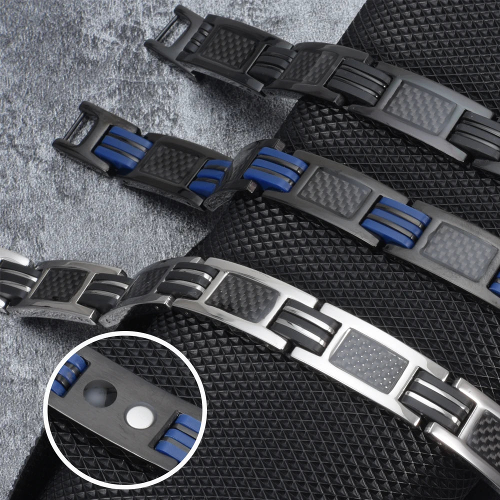 Vinterly Magnetic Bracelet Men Stainless Steel 21cm Black Carbon Fibre Silicone Energy Benefits Therapy Arthritis Jewelry