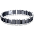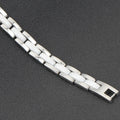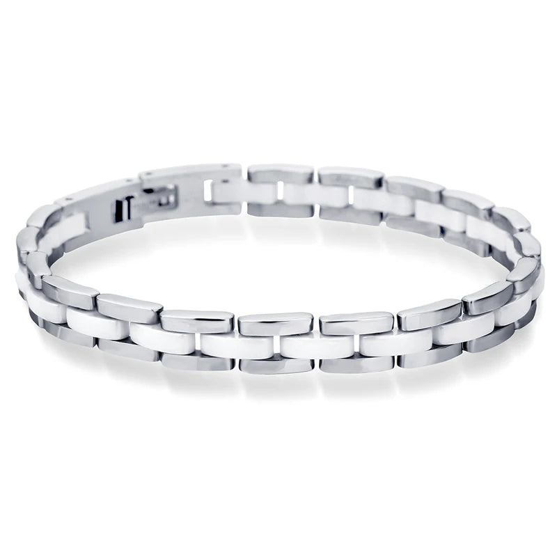 VQYSKO 20cm White Ceramic Bracelet Bangle Stainless Steel Chain Link Bracelet Women And Men Jewelry