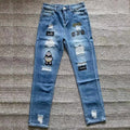 White Embroidery Skinny Ripped Jeans Men Cotton Stretchy Hole Slim Fit Hip Hop Denim Pants Casual Jeans for Men Jogging Trousers