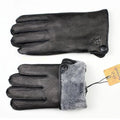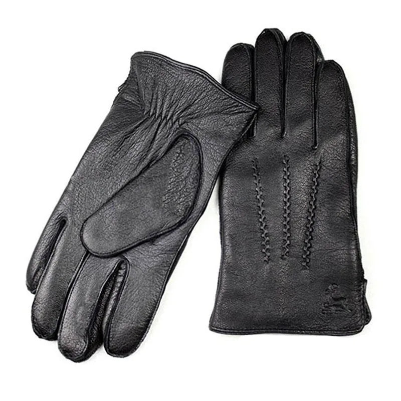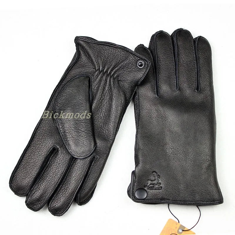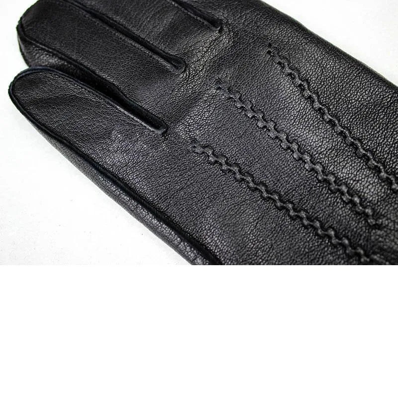 Winter Thick Warm Deerskin Gloves Men's Leather Fashion Simple Outer Seam Style Flannel Lining Thin Wool Points Free Shipping