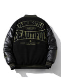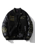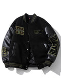 Winter Varsity Jacket Man Leather Sleeves Letter Embroidery Jacket Racing Motorcycle Woolen Coat Button Thick Warm Cool Original